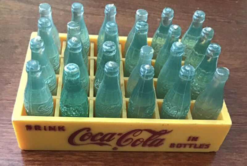 Title (ebay affiliate link): Two Vintage Coca Cola Mini Coke Bottle & Yellow Plastic Crate Sets