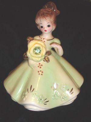 Title (ebay affiliate link): JOSEF ORIGINALS AUGUST PERIDOT BIRTHDAY GIRL FIGURINE