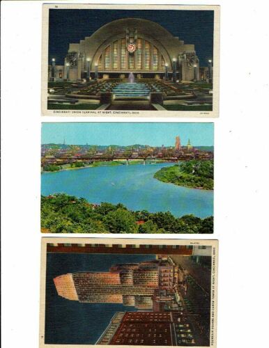 Title (ebay affiliate link): 3 Card Lot, Cincinnati, Ohio, Terminal & Carew Tower Night Views, Panorama View!