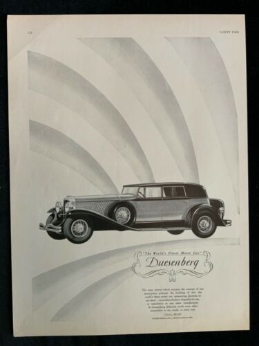 E Duesenberg 1929 Ad 12 3/4 x 9 1/2