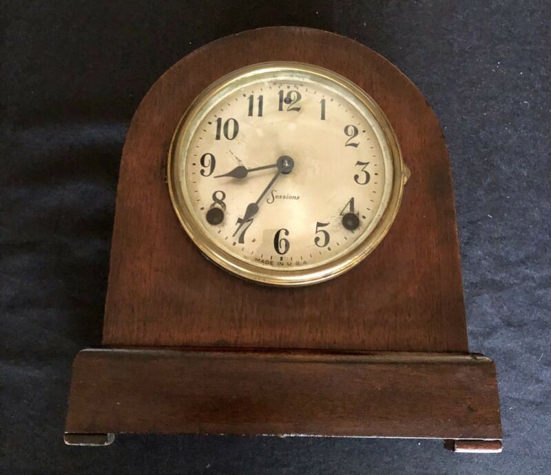 Title (ebay affiliate link): Antique 1925 Mahogany Wood Session Key Wind Mantle Shelf Clock Works & Gongs