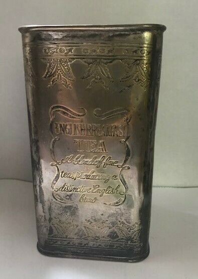Vintage Tall Silverplate English Breakfast Tea Tin