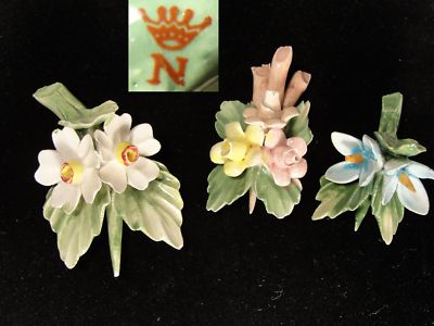3 Vintage Capodimonte Miniature Porcelain Flowers