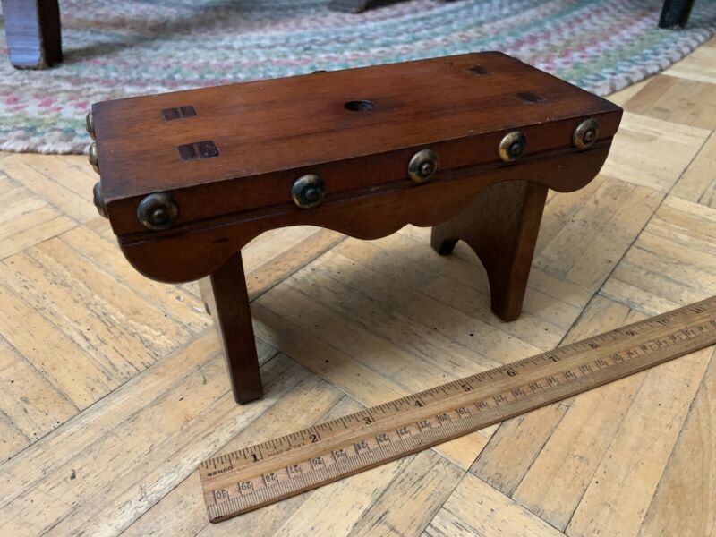 Title (ebay affiliate link): 19th Century Miniature Mahogany Wood Footstool W Decorative Brass Tack Edging