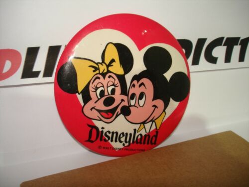 Vintage Mickey Mouse Minnie Mouse Disneyland Pin back Button 3.5" Walt Disney