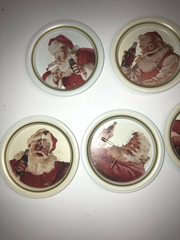 Title (ebay affiliate link): COKE COASTERS SET 6 COCA COLA METAL SANTA CLAUS WHITE GOLD CHRISTMAS VINTGE BAR.