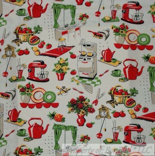 BonEful Fabric Cotton Quilt Antique Pyrex Kitchen Flower Tea Pot Dish New SCRAP