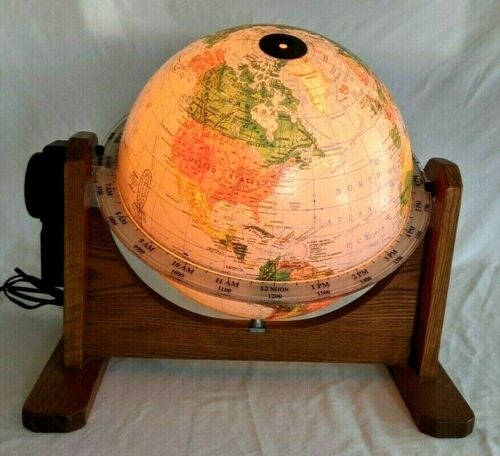 VINTAGE SUNLIT ILLUMINATED TERRESTRIAL WORLD GLOBE 24 HR CLOCK