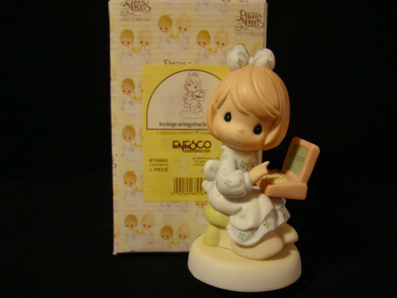 Title (ebay affiliate link): Precious Moments-Girl/Mom/Secretary At Laptop Computer-Lovingcaringsharing.com