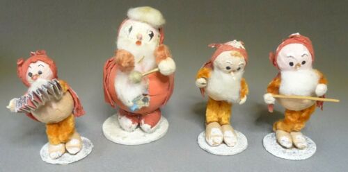 vintage Christmas Elves & Santa Japan Lot 4 Paper mache'' spun cotton crepe TLC