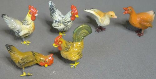 vintage German Putz LOT Chickens Ducks metal legs Christmas Village Germany
