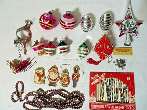 VINTAGE LOT CHRISTMAS TREE ORNAMENTS GLASS BEADS SHINY BRITE TOPPER VENUS OTHERS