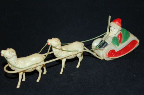 Title (ebay affiliate link): Antique Celluloid Santa Reindeer Christmas Ornament Display