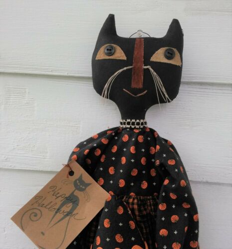 Title (ebay affiliate link): Primitive Halloween Cat/Painted 24" W/Candy Corn Pillow