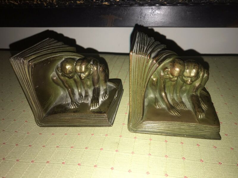 JENNINGS BROTHERS: PAIR OF JB BRONZE MONKEY BOOKENDS: JB 2462
