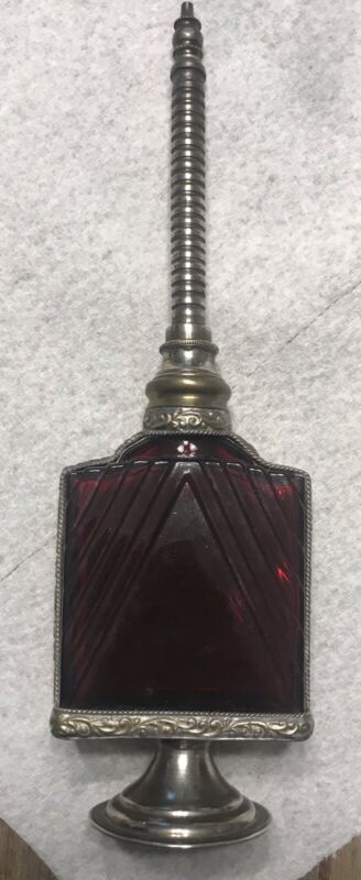 Ruby Red Morrocan Perfume Rose Water Bottle Sprinkler Glass Metal Vintage