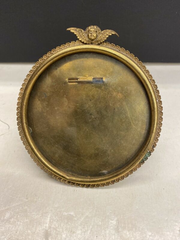 Antique Round Victorian Gilt Brass Easel Picture Frame Cherub