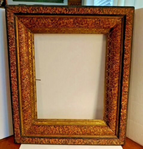 Antique Deep Walnut Ornate Design PICTURE FRAME Shadow Box Mottled Marbling