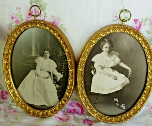 Title (ebay affiliate link): Vintage Gold Gesso on Wood Frames Pair with Antique Portraits Oval w/ Glass