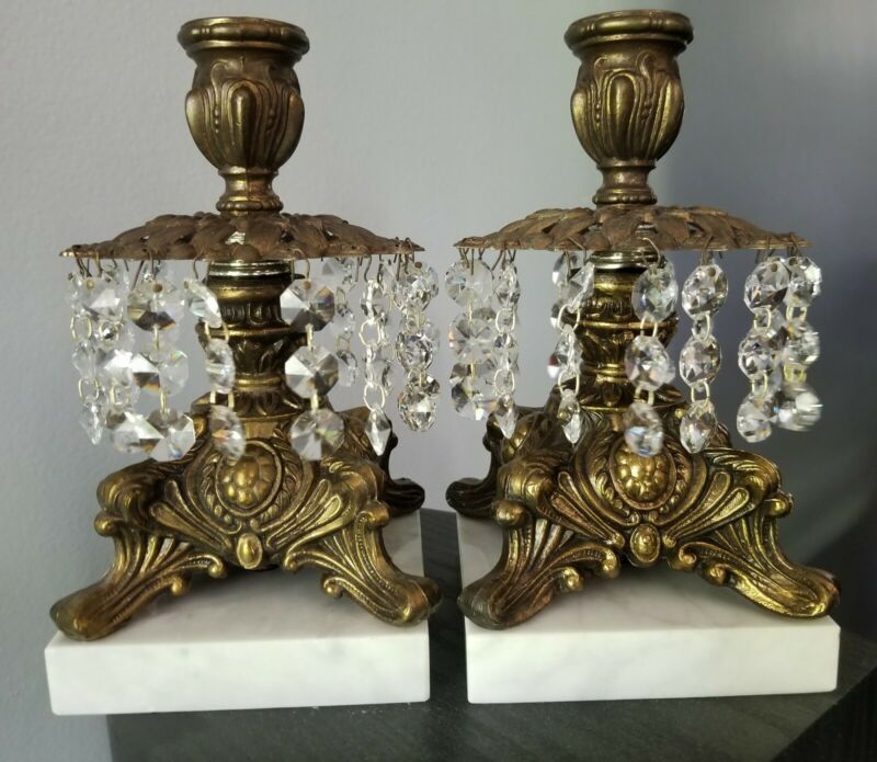 Title (ebay affiliate link): VTG Set 2 Brass With Marble Base Candle Stick Or Lamp Base w Crystal Drop LOVELY