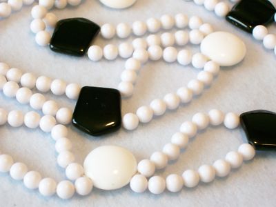 ART DECO MILK & BLACK GLASS & LUCITE BEAD NECKLACE
