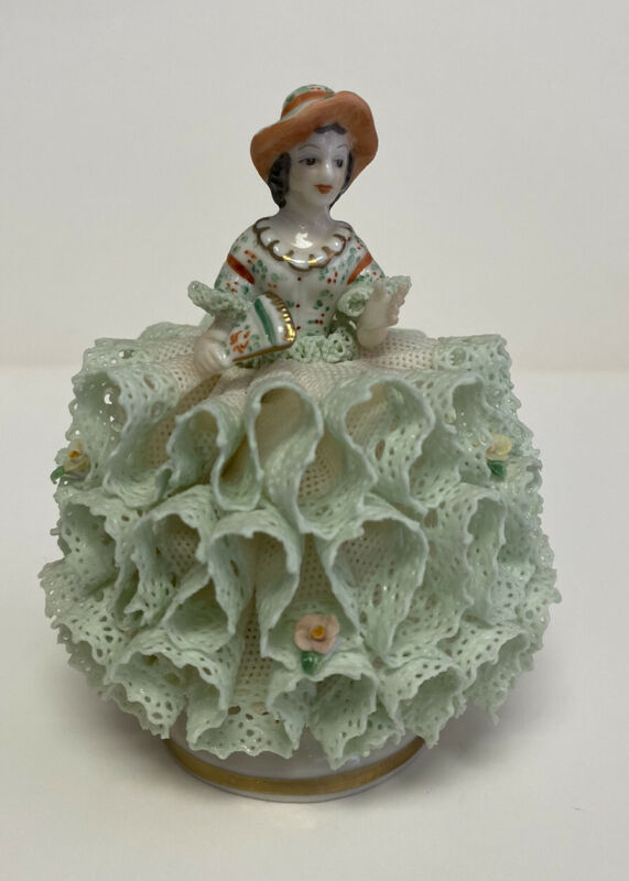 Title (ebay affiliate link): Irish Dresden "Lydia" Stiff Lace Dress Green MZ Porcelain Emerald Collection 4"