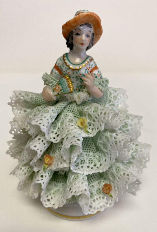Irish Dresden "Lydia" Stiff Lace Dress Green MZ Porcelain 3.75"