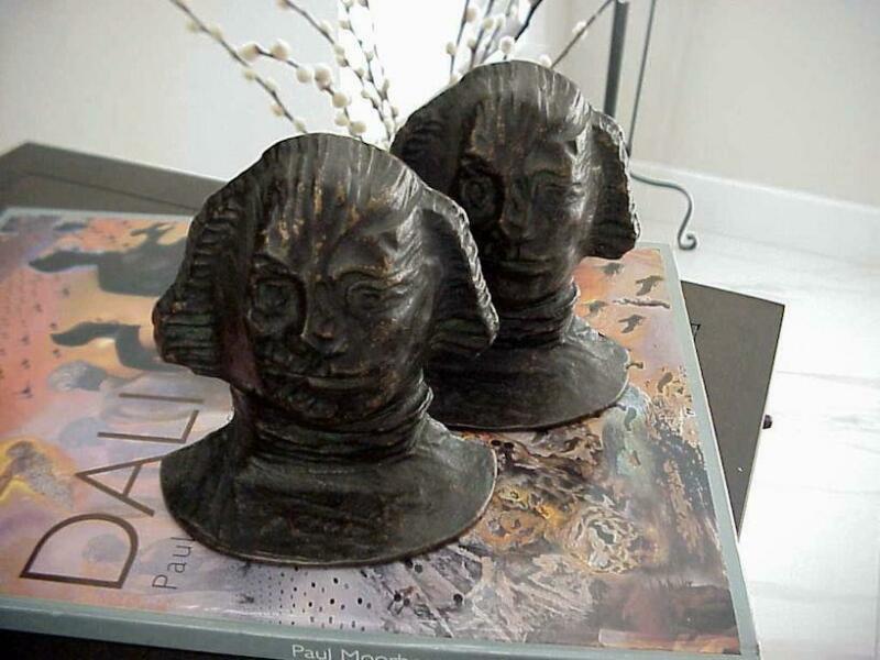 ANTIQUE HEAVY CAST IRON SPHINX BOOKENDS