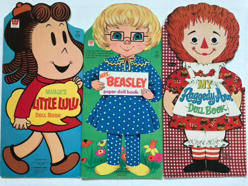 Title (ebay affiliate link): Vtg 3 Shaped Paper Doll Whitman Books Mrs Beasley-Little Lulu-Raggedy Ann Nice