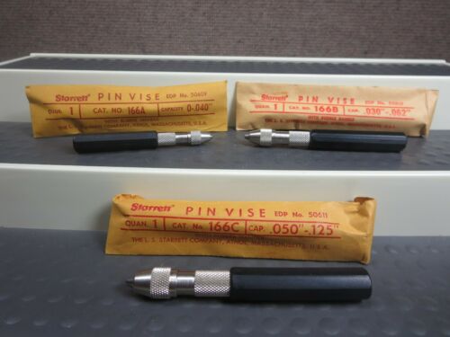 Starrett Pin Vise Lot-3 166 A B C w Rubber Handles Machinist Watchmaker Jeweler