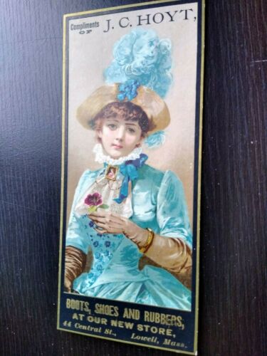 Title (ebay affiliate link): J.C. Hoyt Boots Shoes Rubbers Store Trade Ad Sign Lowell Mass. Victorian Woman