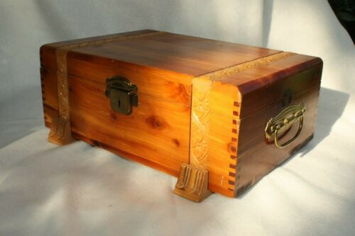 antique vintage wooden jewelry keepsake cedar box chest lined 11 "x 7" x 5"
