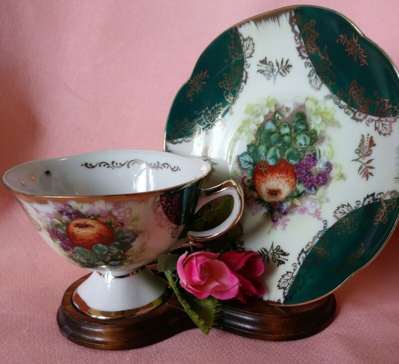 Vintage Royal L & M Halsey Fruit Footed Tea Cup & Saucer Set