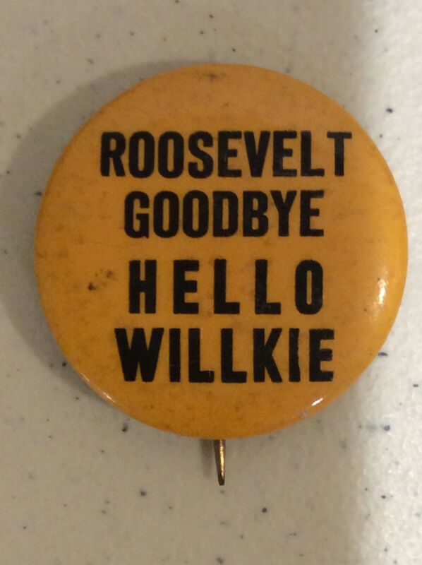 Title (ebay affiliate link): Willkie Roosevelt Goodbye Hello Willkie POLITICAL Pin BUTTON Pinback 1 1/4 Inch