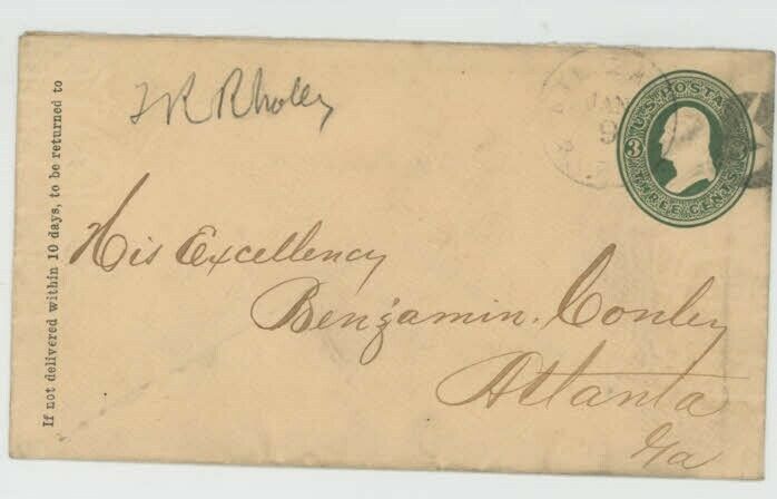 Mr Fancy Cancel to Atlanta GA His Excellency Benjamin Conley Entire #2525
