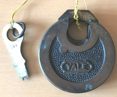Title (ebay affiliate link): Vintage Brass Yale & Towne Lock Round Push Key Padlock with Original Key