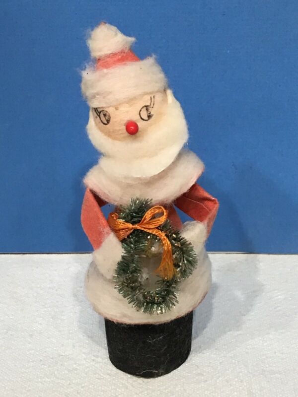 Vtg Santa Spun Cotton Flocked Chenille Pipe Cleaner Cardboard Christmas Ornament