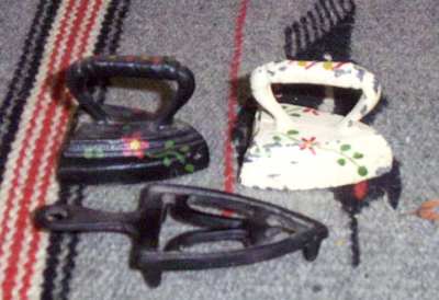 SWEET OLD SAD IRON SALT& PEPPER SHAKERS OF CAST IRON