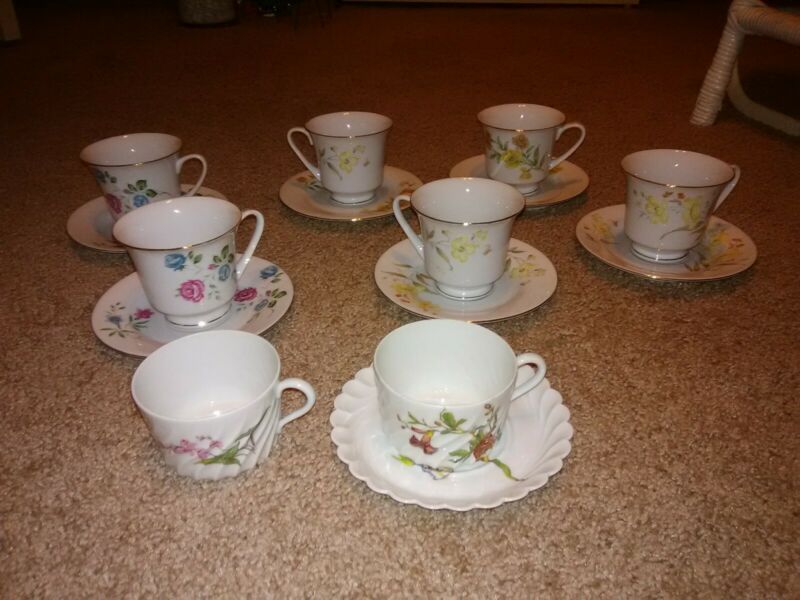 Lot Of 7 Mixed Teacups And Saucers- 1 set plus teacup is Haviland