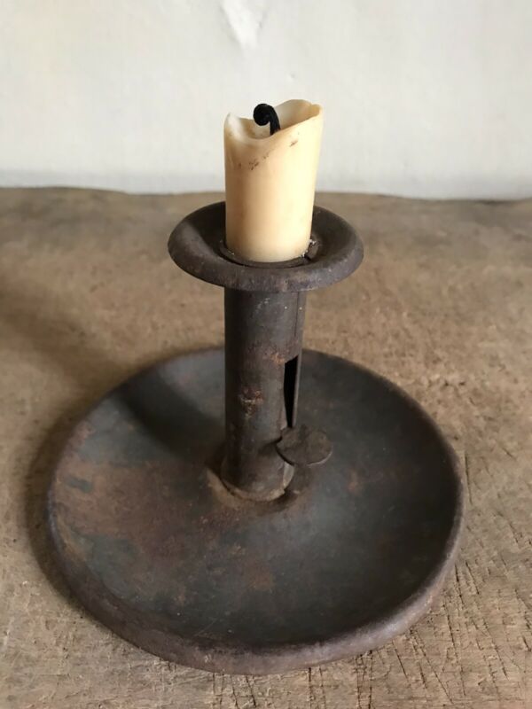 Title (ebay affiliate link): Early Antique Handmade Push Up Tin Candle Holder Old Dark Patina AAFA