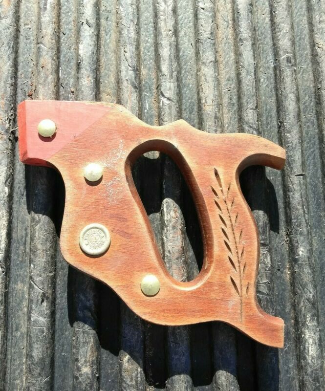 Title (ebay affiliate link): Vintage WARRANTED SUPERIOR Hand Saw Handle w/Buttons & Medallion Wheat Pattern