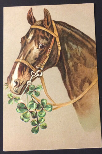 Title (ebay affiliate link): 1918 PC riding HORSE with Good Luck four leaf clover embossed Pferd Cheval