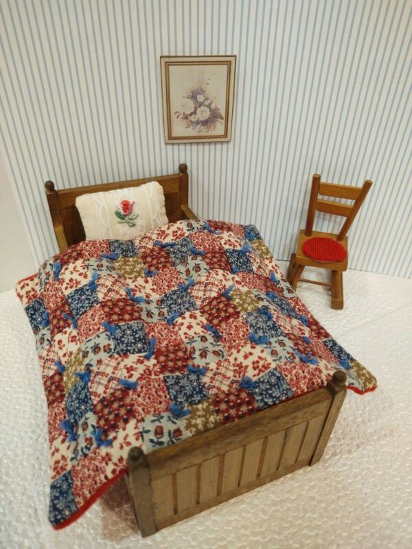Title (ebay affiliate link): Rare TRUNDLE BED w/QUILT And ROCKER Wood Vintage Miniature Dollhouse Furniture