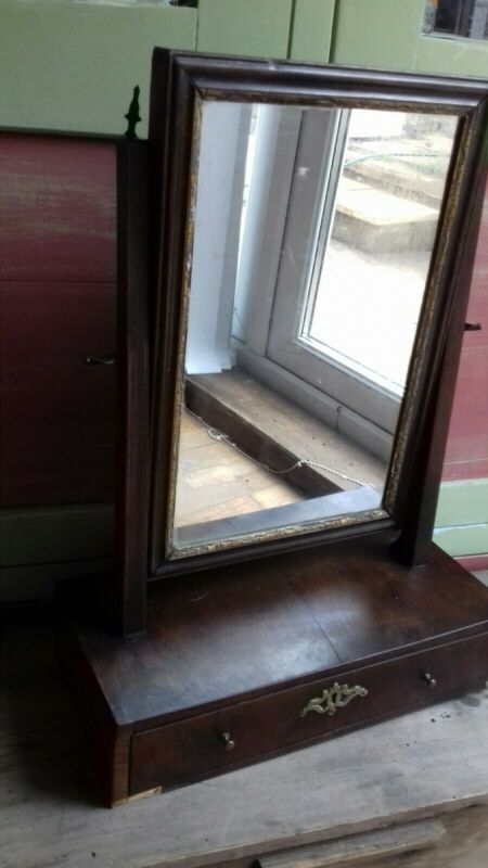 Title (ebay affiliate link): Antique wooden dressing table mirror with drawer.