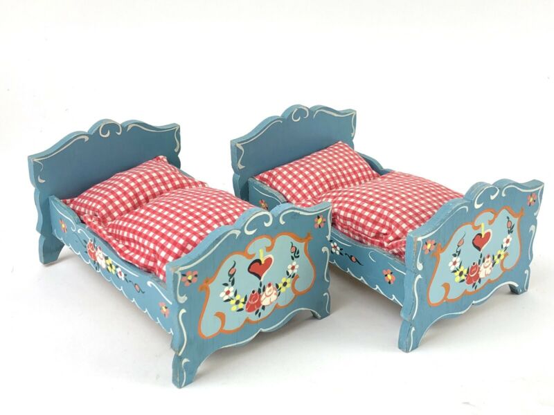 Vintage Dora Kuhn German Doll House dollhouse Furniture Pair Twin Single Beds
