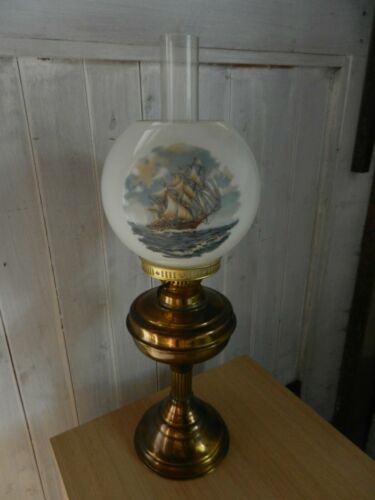 Title (ebay affiliate link): VINTAGE BRASS OIL LAMP WITH SHIP DECORATION - GOOD CONDITION