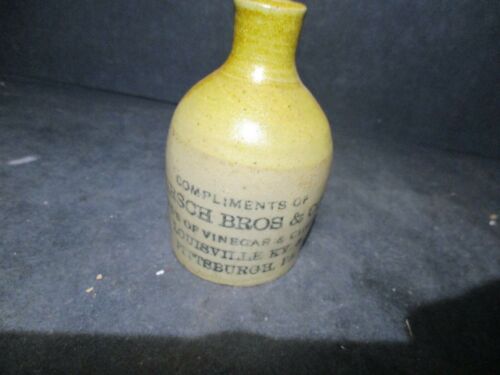 Title (ebay affiliate link): VINTAGE ANTIQUE STONEWARE MINI JUG HIRSCH BROS VINEGAR & CIDER E105 PL