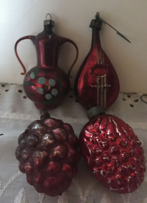 Title (ebay affiliate link): 4 Vintage German Germany Christmas Tree Ornaments Mercury Glass Pitcher Grape