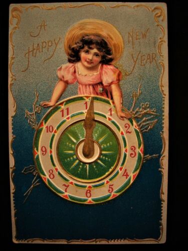 Title (ebay affiliate link): Tuck''s Girl In Pink Dress Straw Hat Over New Year Clock Emb Antique Postcard