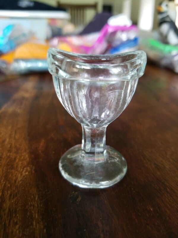 Title (ebay affiliate link): Antique Clear Glass Pedestal Unsigned Eye Wash Cup Eye Bath